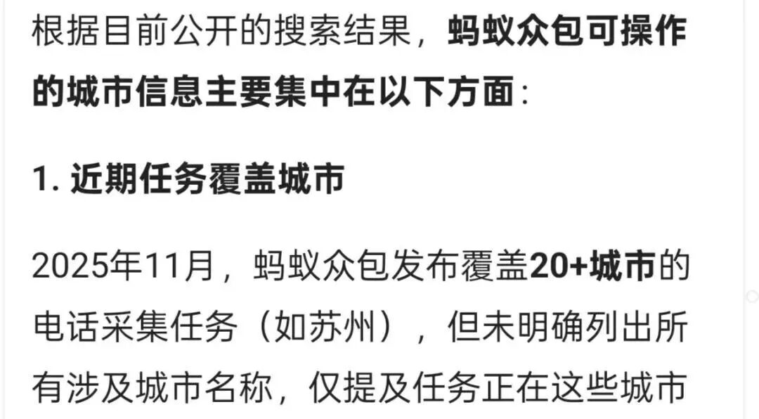 如果你的城市刚好开通了,又想找个不费脑子的兼职赚点零花,那不妨去“蚂蚁众包”的公众号里仔细研究一下。