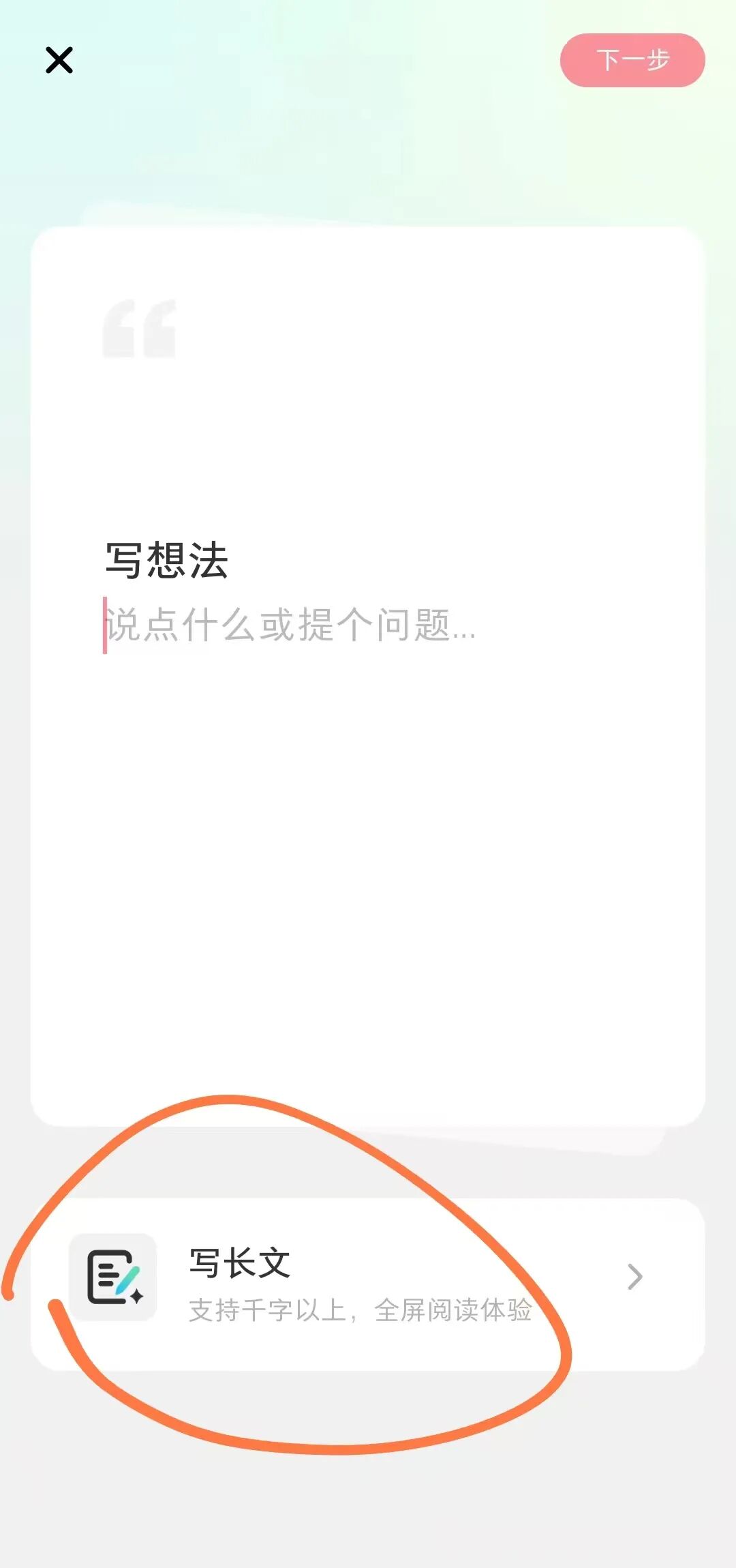 比如这个长文就是发布的文字那里,传统的就是上面输入就是短3:4的文字笔记,下面的就是长的9:16的文字笔记,上面那个只能一张封面图,下面这个就是根据我们上传的文字字数来决定。