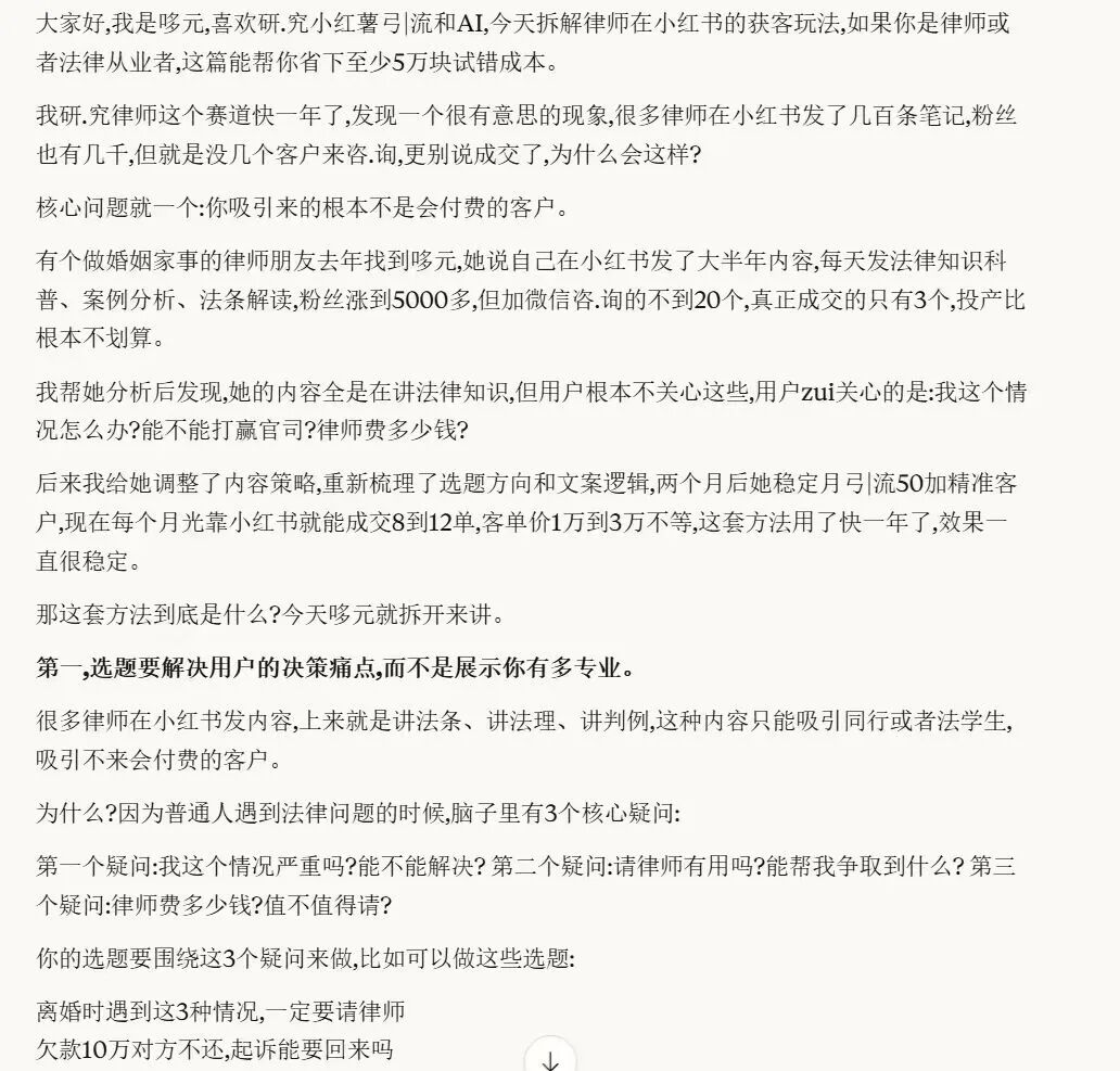 就是围绕一个选题然后讲干货,这样的长文就可以容纳几千字了,内容足够丰富,最重要的是可以加入一些自己的案例或者结尾资料引流,注意引流要委婉一点,避免违规。