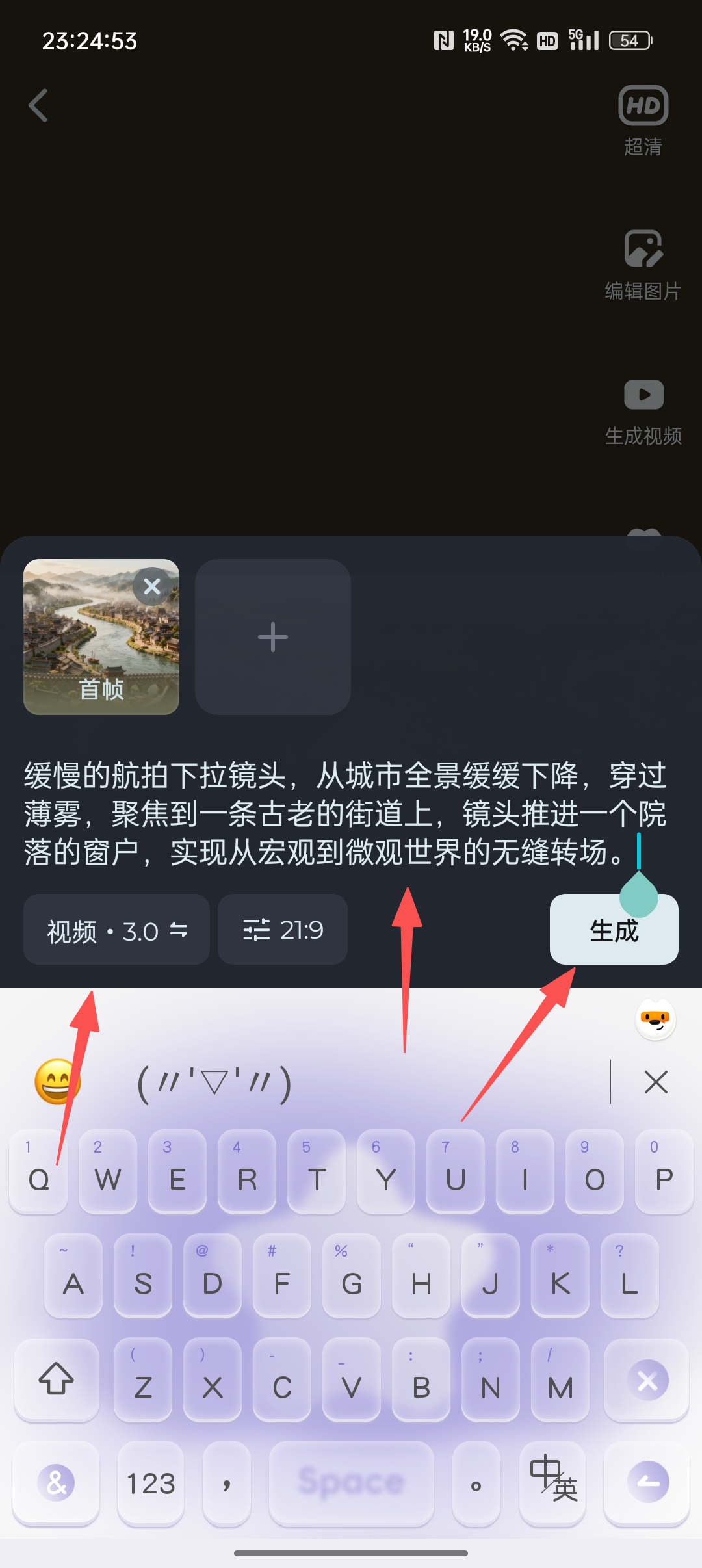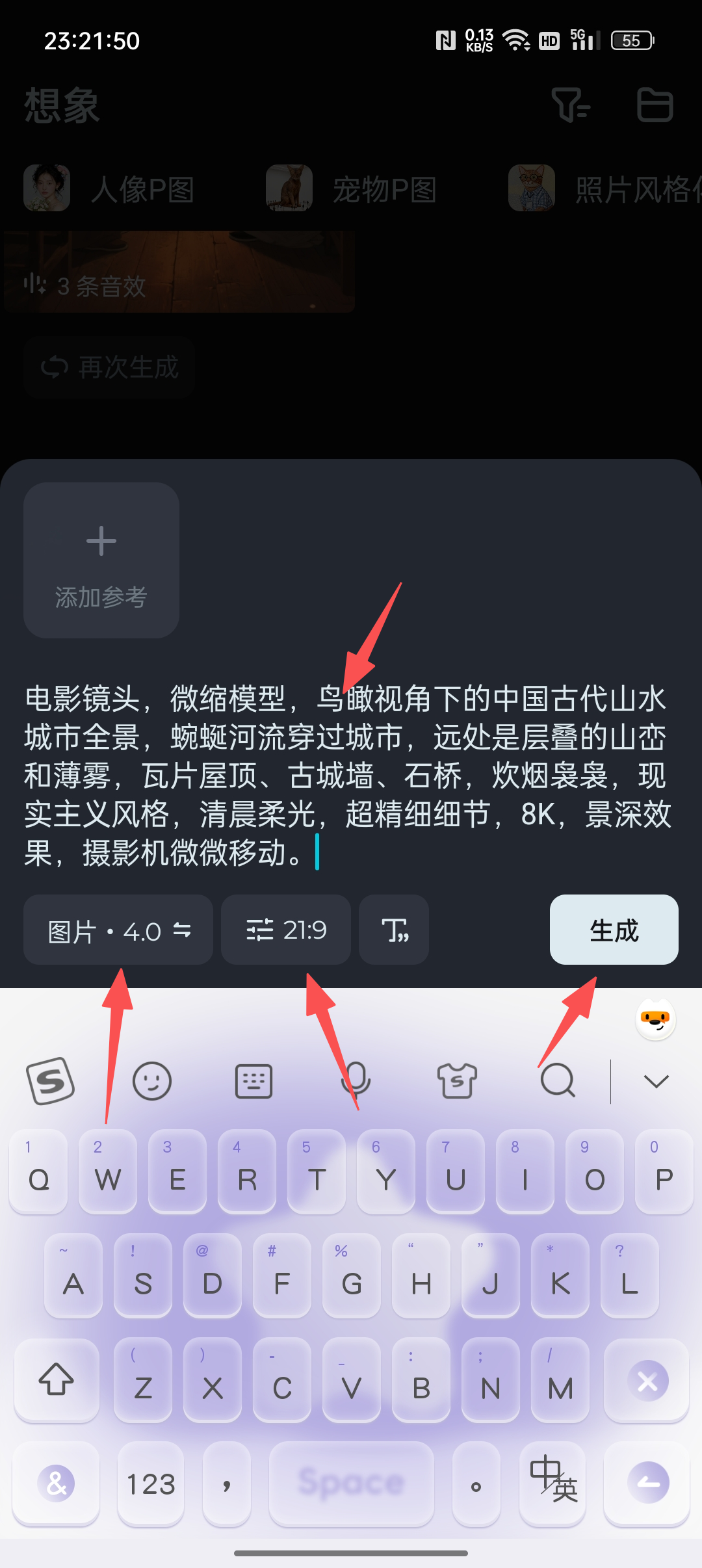 打开即梦,选择图片生成,比例选择21:9,模型选择4.0,粘贴提示词