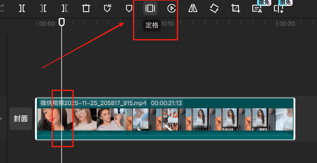 第三步:制作成片效果图 将下载的爆款视频导入剪映,然后从爆款视频的前半部分,找到我们需要的帧,点击“定格”功能。依次操作,得到我们需要的所有图片。