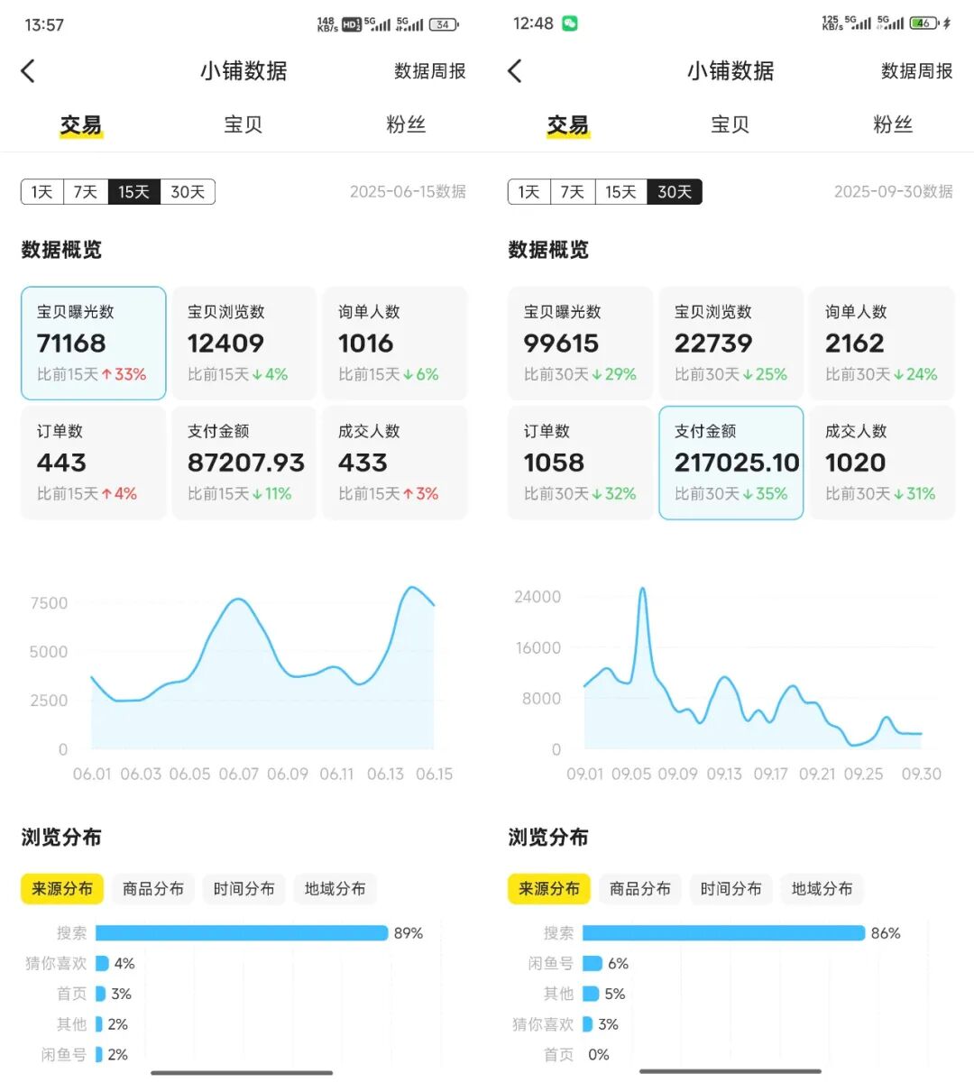 我认识的一个圈内的大佬,3个人的小团队,工作室全职在闲鱼卖,批量操作10家店铺,一个月10万+的利润。