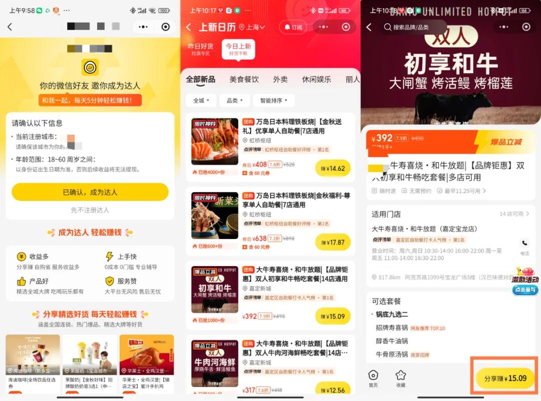 比如下面这个小程序,申请为推广大人,就可以去推广美食优惠券,然后拿到佣金。
