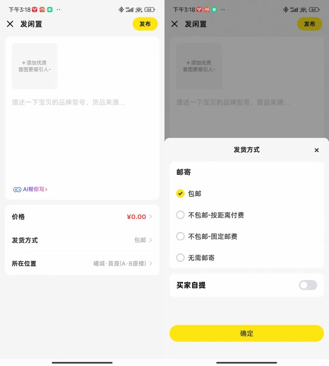 填写好准备好的商品文案和图片,位置定位好,选择包邮,就可以发布了。