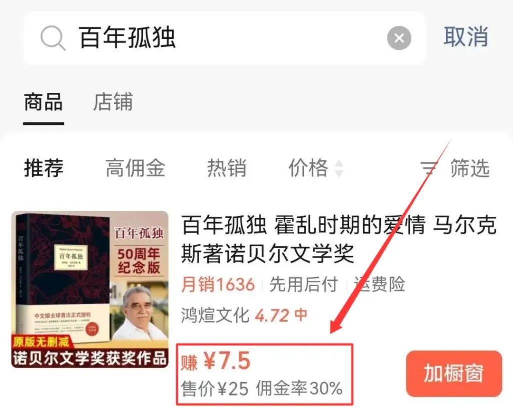 我去带货中心查了下,这本书售价 25 元,佣金率 30%,也就是说卖出去一单,咱就能赚 7.5 元!8000 单算下来,妥妥 6 万多的收入,这还没算其他收益。