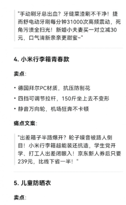 选择比较中意的品,把第二段指令输入,继续分析卖点,这样爆款的文案就搞定了