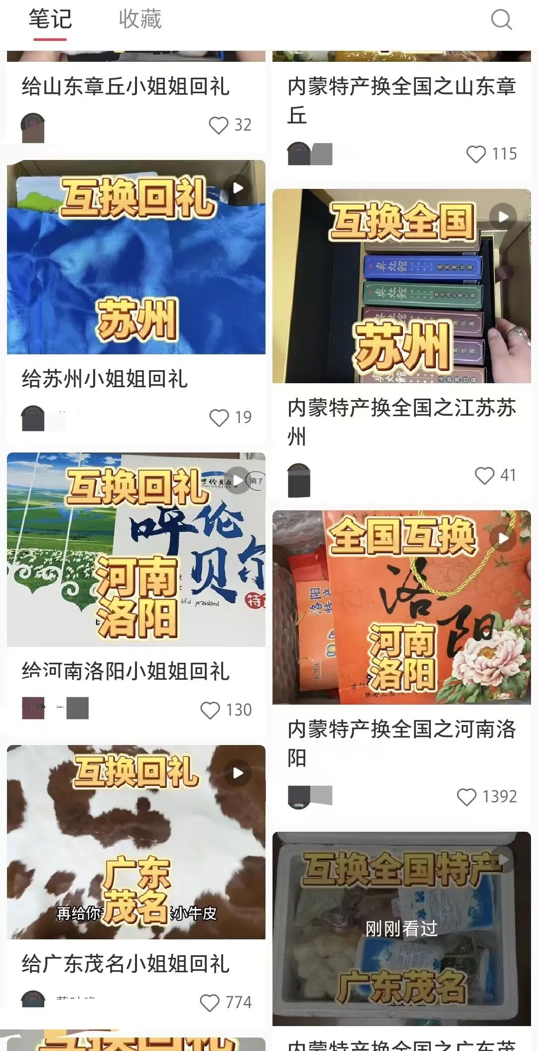 那这跟我们卖特产有什么关系,我们看下面这个账号,是一个内蒙古的作者,就是跟全国各地的朋友互换特产,换了之后呢还有回礼,一来一回的。