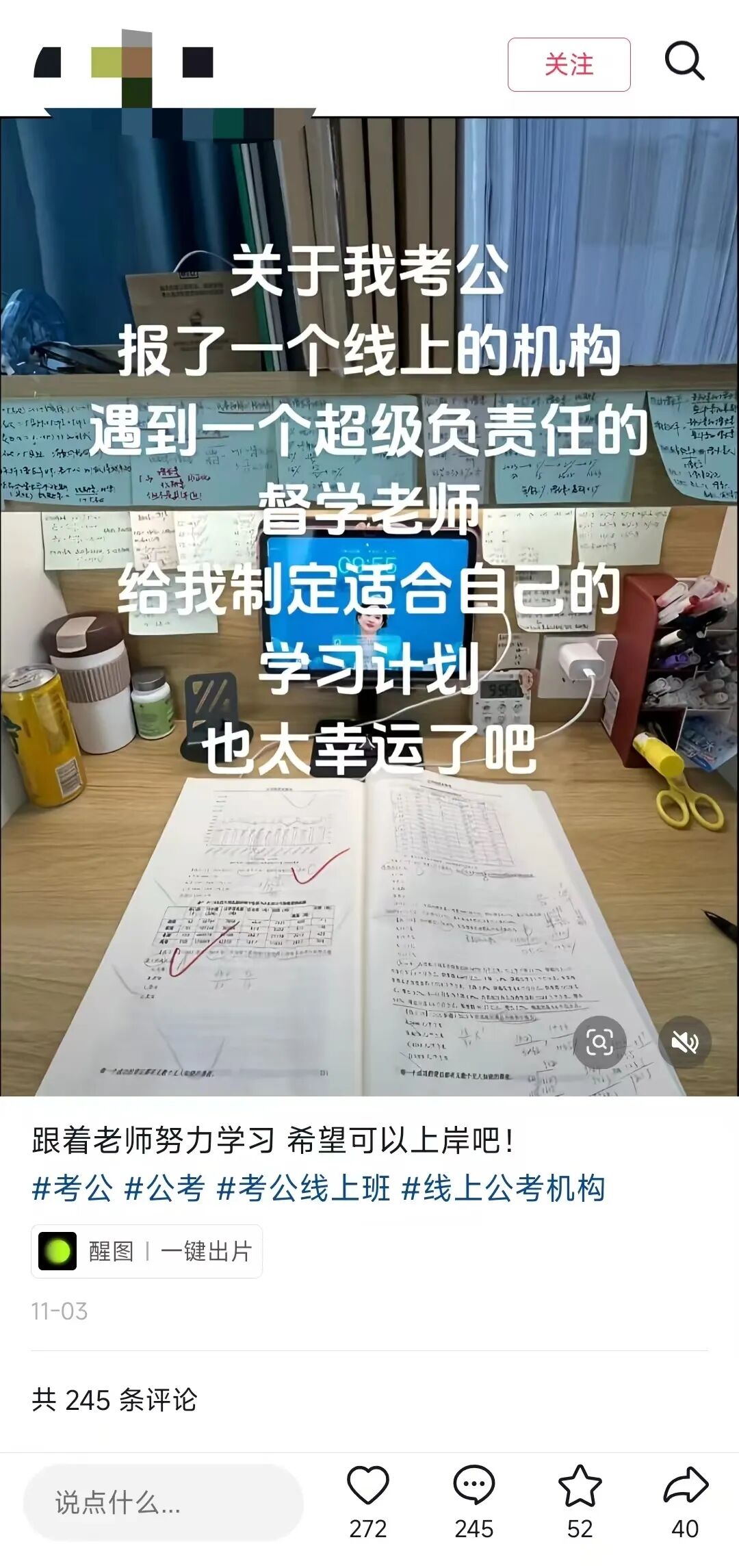 第二个呢,是我最近有位做考公的私教学员,我给他做玩法调研的时候刷到的一个抖音的作品,我们看下面这个,是一个普通的素人上岸的种草笔记