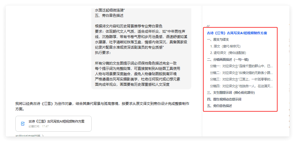 之前写过的都是卡通版古诗动画的,写实的却是没写过,今天就给大家拆解一下,这类和卡通的还不太一样;文章手把手带大家用古诗词动画走一遍制作流程,提供的提示词古文也通用的。