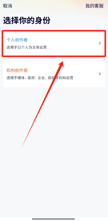 进去点创作中心进去之后,我们是个人去做,那就直接选择个人创作者就可以。
