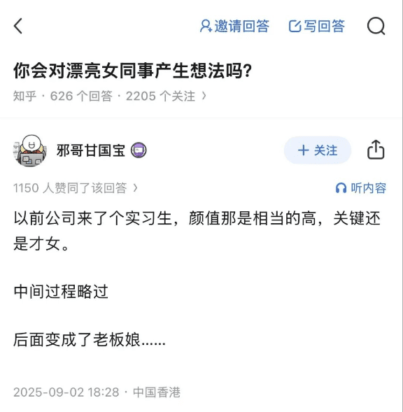 比如:“你会对漂亮女同事产生想法吗?”