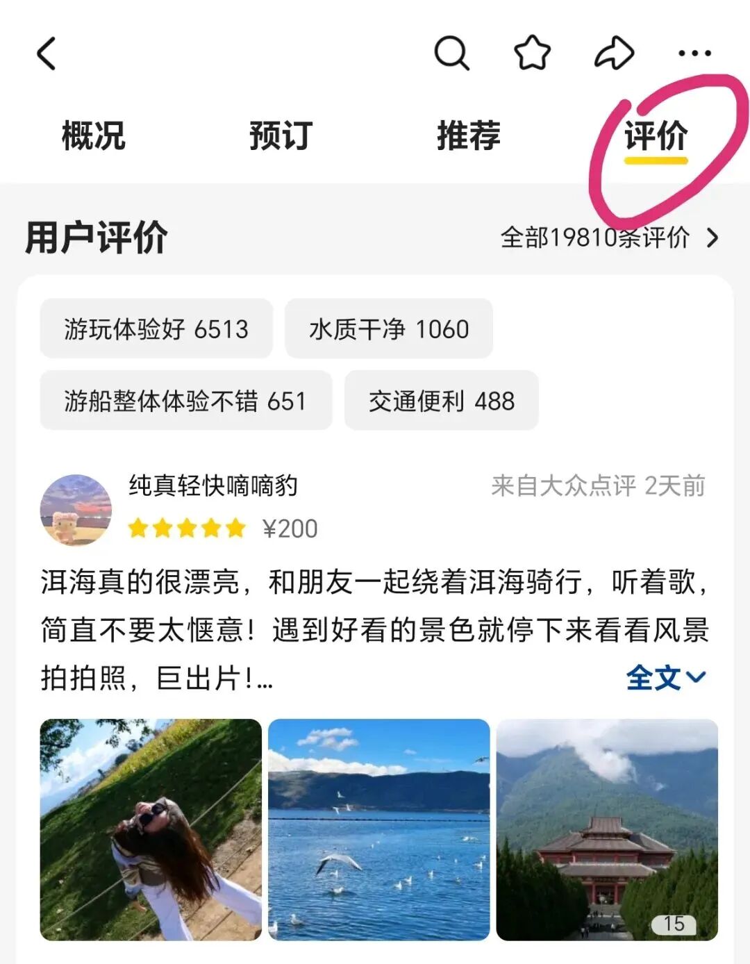 转战美团、大众点评评论区,搜索洱海、苍山等目标景点,保存用户上传的清晰实拍图。