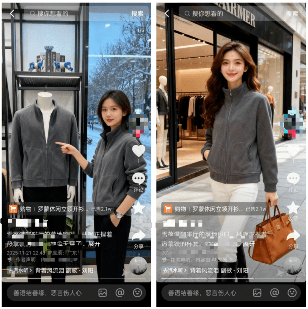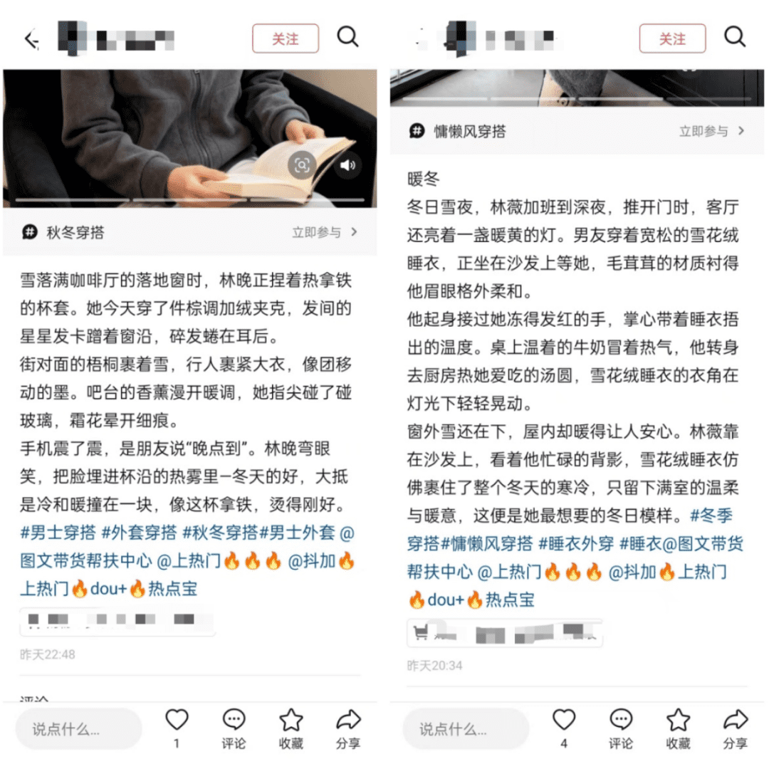 这次给大家带来的是AI带货男装领域的一很有趣的玩法,“男装女穿”,这个是什么意思呢,就是说我们推广的图片人物是美女,但穿的是男装,我们卖的也是男装这样的搭配天然会给人带来一种反差感,作品再配上一些浪漫爱情电影味的文案,氛围感直接拉满,对于一些我们来看一下对标账号: