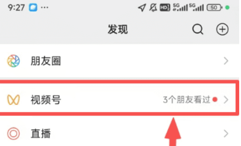 打开微信 → 发现 → 视频号