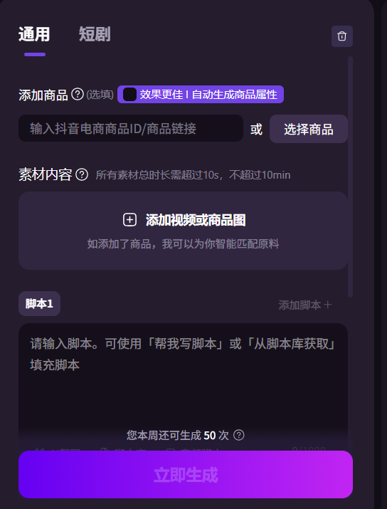 注册并登录后,选择智能成片功能,按照提示上传视频和文案,AI将自动帮你完成视频的编辑,整个过程大概需要10分钟,每周可以免费生成多达50条视频。