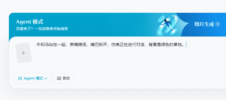 在提示词框中,输入关于牛和马的搞笑对话提示,例如: