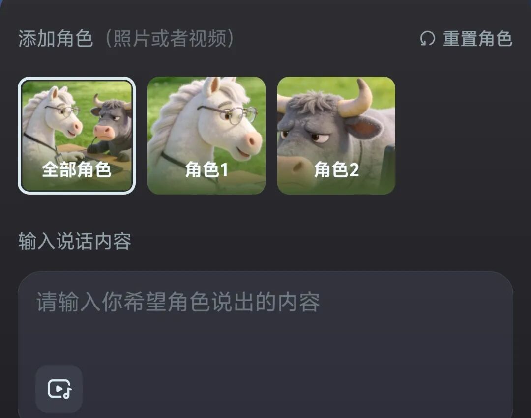 选择角色2(马):同样的步骤,选择马的头像,输入另一段对话: