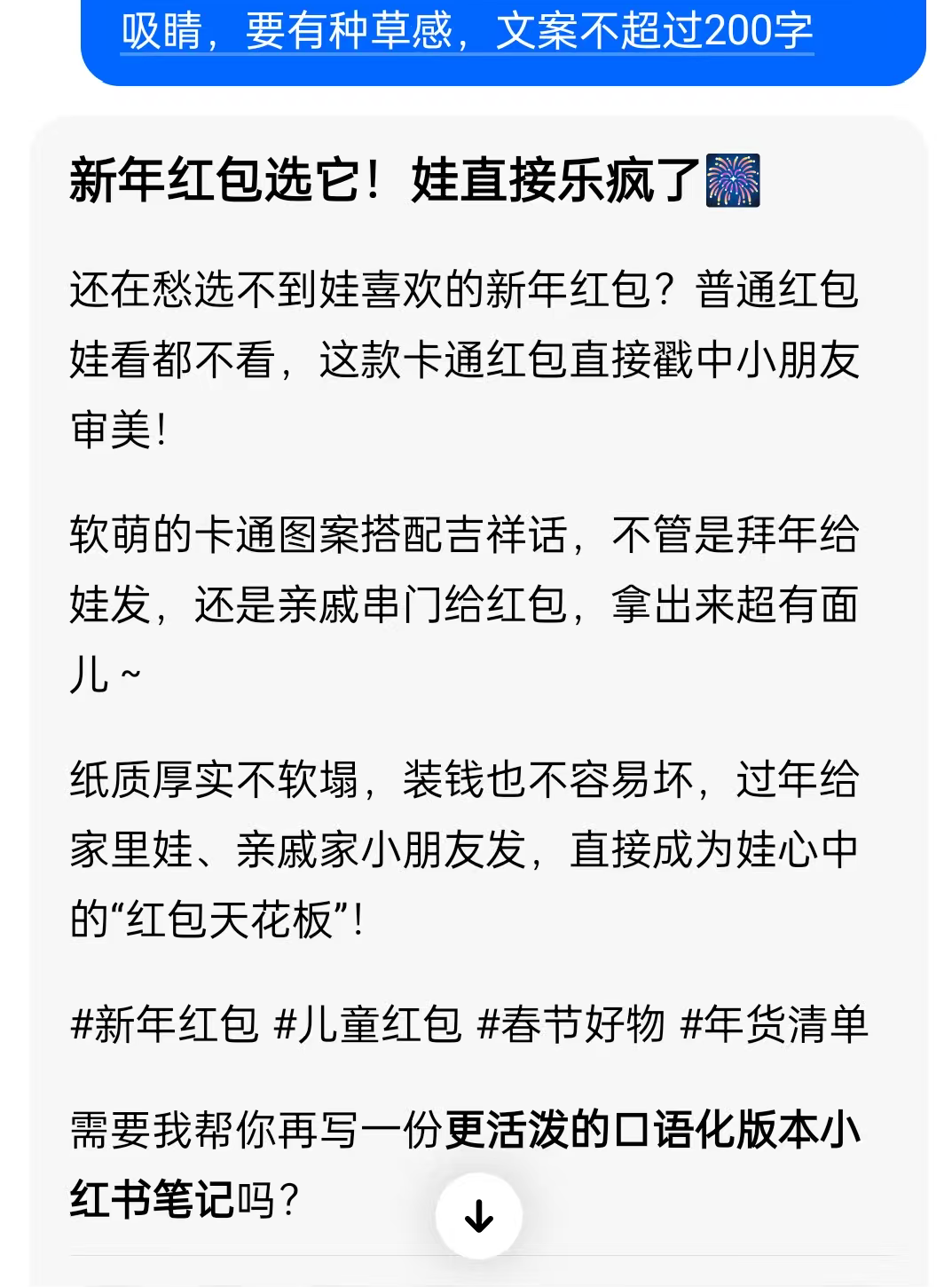 说一下如何发小红书笔记吧,也非常简单,如果是发图文,图片部分主要是展示红包的封面,如果我们手里没有货,可以用AI做。