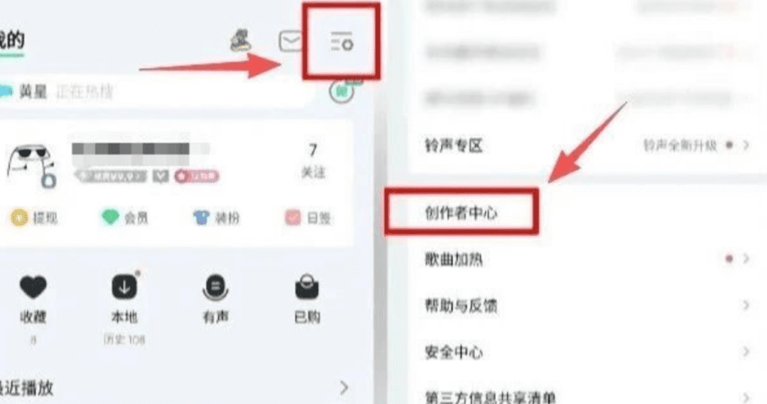 打开 QQ 音乐,点右上角三条杠,进创作中心,申请成为 Q 音音乐人。资料按提示一次性填好,审核通过,你就有发歌权,相当于有了个 24 小时赚钱机器。