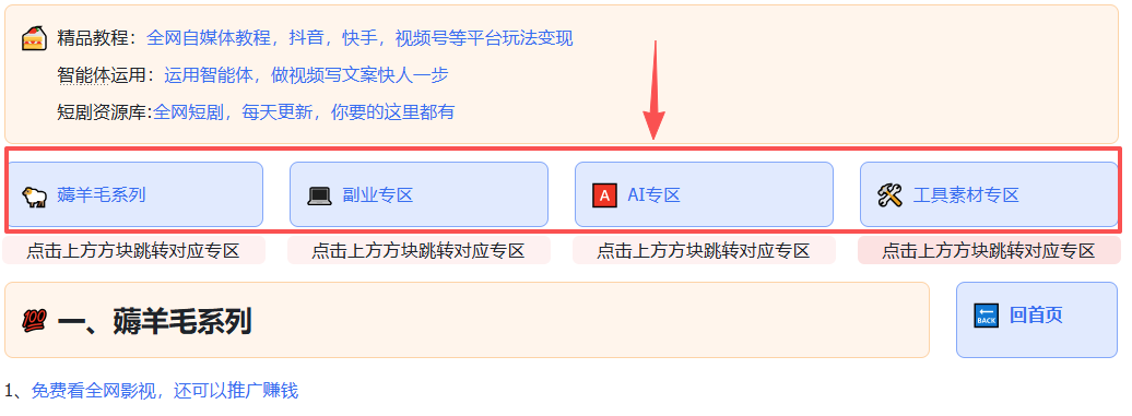 目前文档我重新编辑了一下方便大家更好的进行阅读文档开头部分,直接加了跳转,想找哪个区域的内容,直接点击就会跳转到对应的专区但是好多内容还没添加进去,正逐步添加中,或者大家有什么需要的也可以直接在文档下面留言,我去进行更新