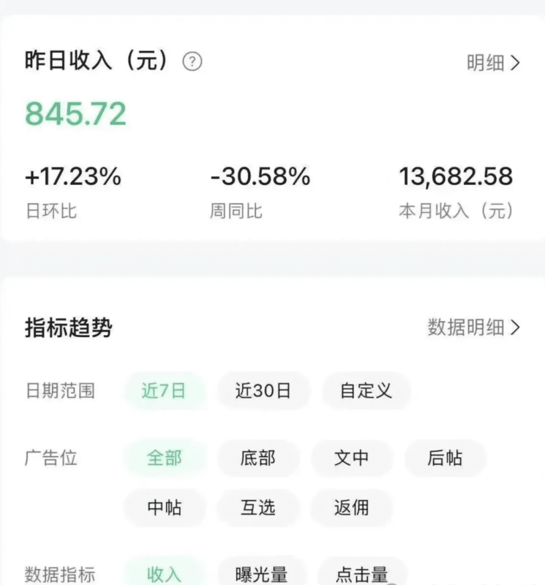 再说说大家最关心的收益。收益全靠公众号流量主广告。一篇 5000 阅读的文章,日入几十元轻松实现。