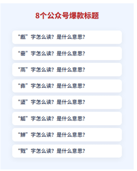 今天给大家分享的这个玩法,让我眼前一亮,它就是公众号生僻字图文。