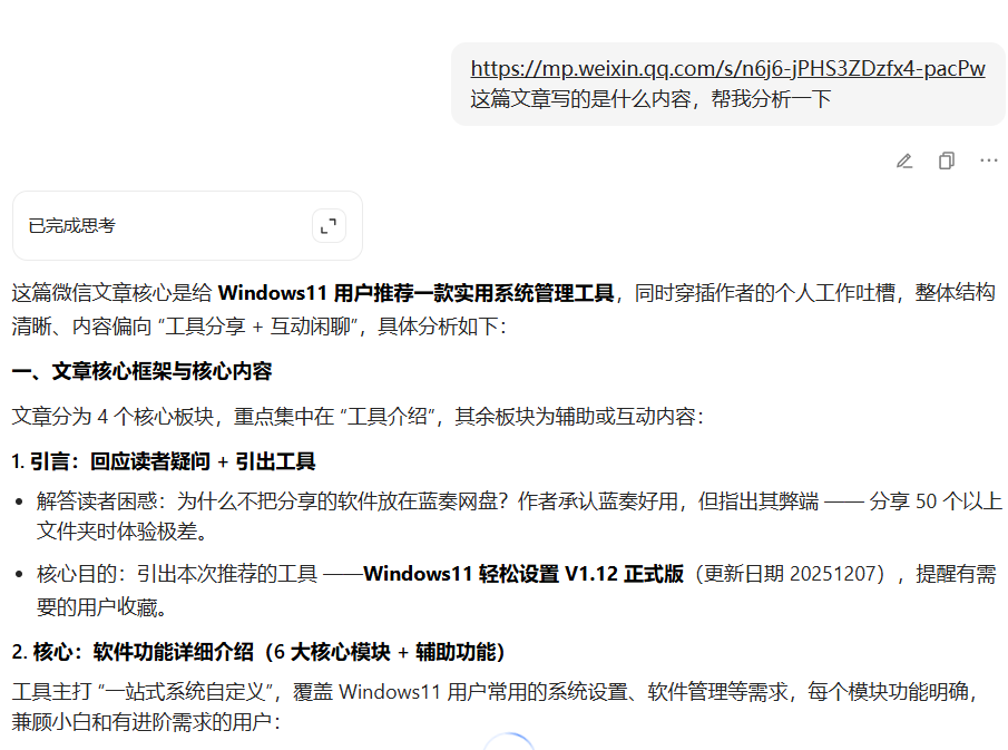 我们随便找一个同行的文章,复制链接给AI,然后让AI帮我们生成一个新的。