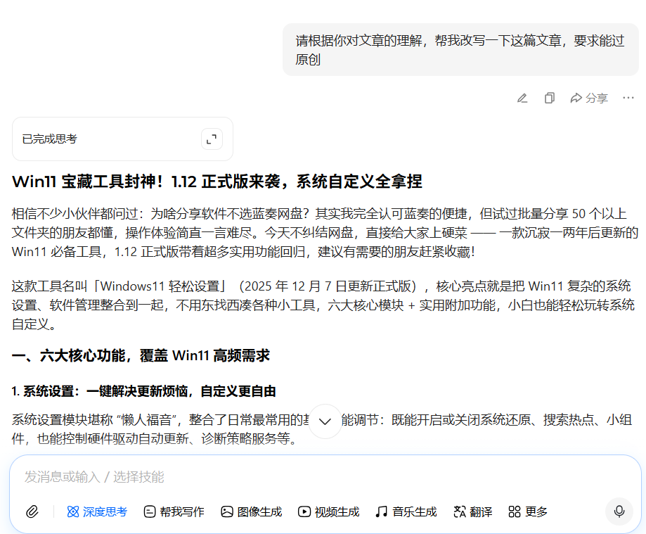 有一点需要注意,改写好的文章最好自己再润色一遍,就是改一下里面的语气等等,防止AI内容检测,影响账号流量。