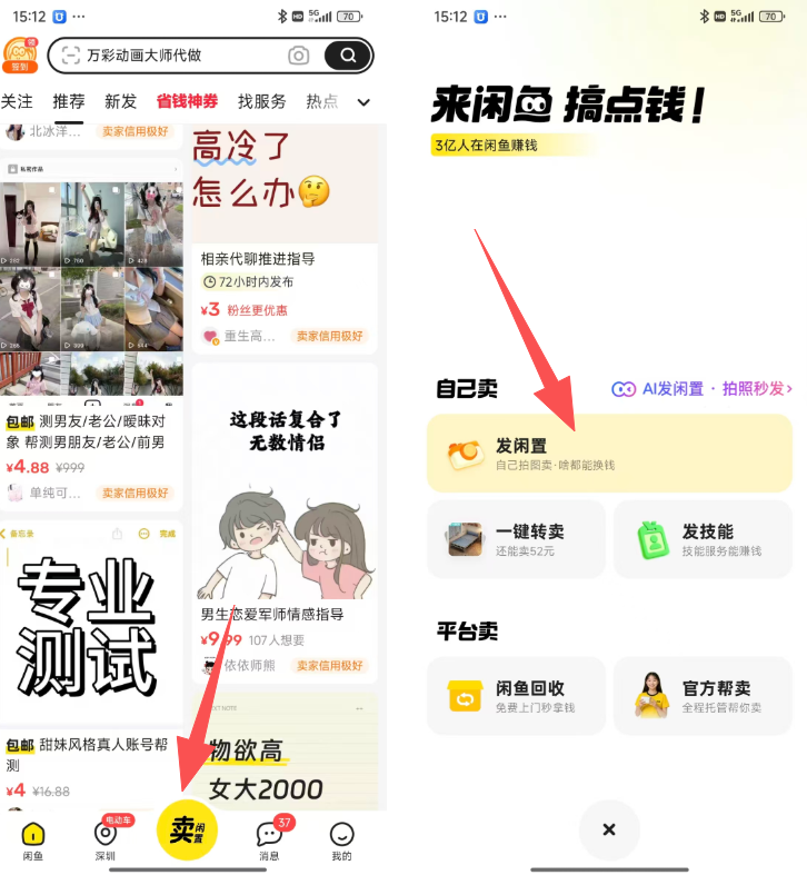 这个项目比较适合女孩子去操作,原理也比较简单,咸鱼上架产品我之前也分享过很多次,在首页点击发布闲置,进去就可以编辑。