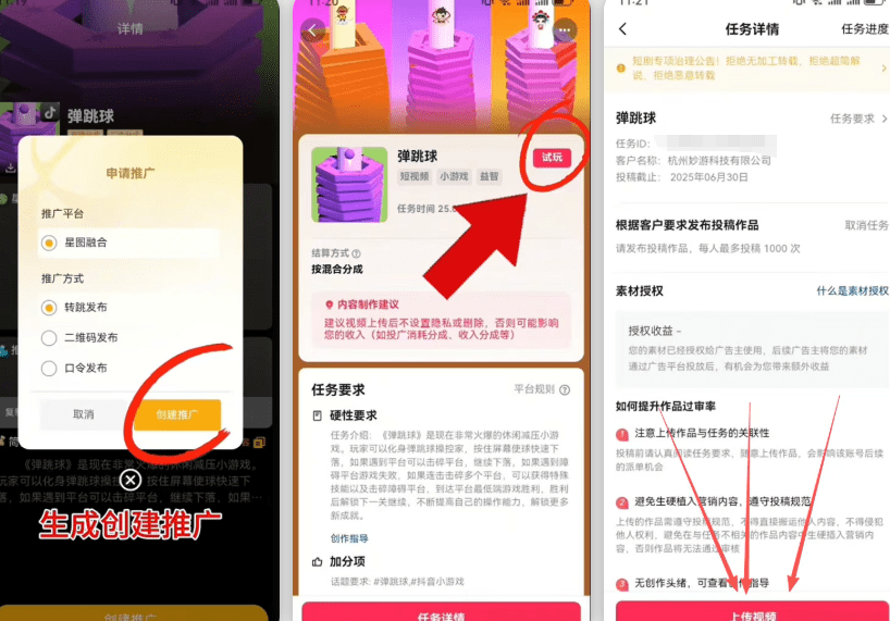 试玩一下游戏,用手机录个屏,简单剪辑后发布视频。