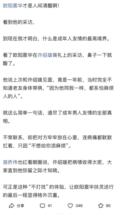 第三步,热点事件直接套用 你看这个第一行说的是欧阳震华去抬棺的事情,第二行说的是采访引出的观点,第三行就像个揭秘的意思,埋一个钩子。 比如现在今天的热点胡彦斌和易梦玲的事情,你就可以怎么说 胡彦斌才是人间清醒啊 看到他的采访 到现在我才明白,什么是真正成熟的爱情观。最难的开头就这么解决了。