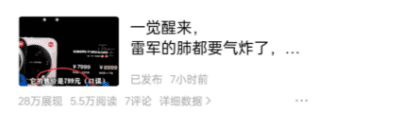 其实很简单,我们就去评论区找答案。那些点赞高的评论,还有一些反常的,你感觉有意思的评论,都可以成为你的角度。 今天我看到某度的榜单,有一个说,卢伟冰口误把 7999的小米新手机说成799。