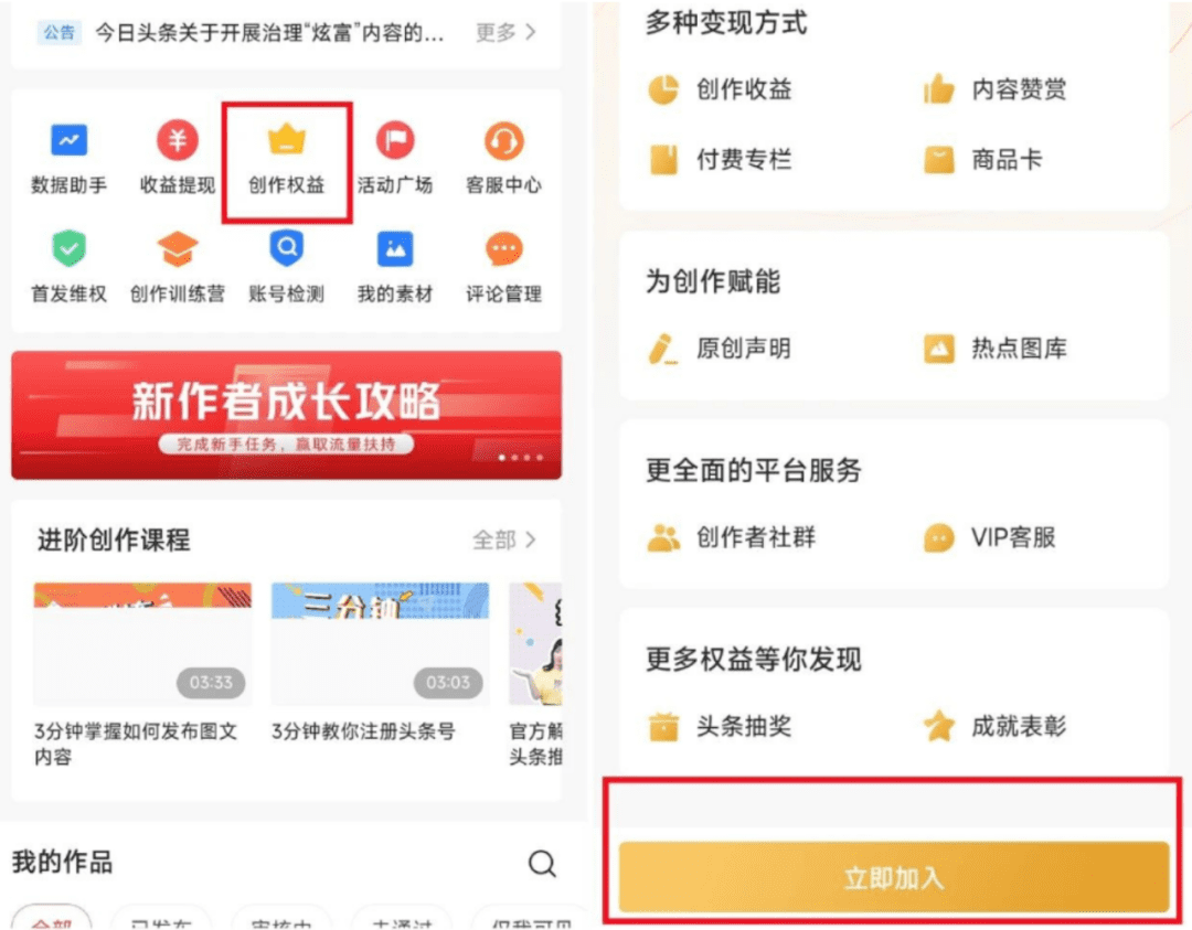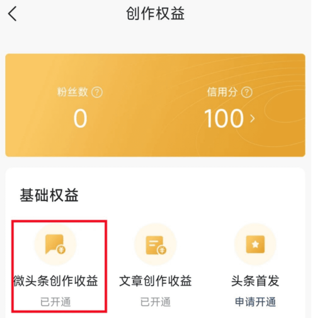 重点锁定”创作者中心-创作权益”页面,申请开通时必勾选”微头条创作收益”权限项。