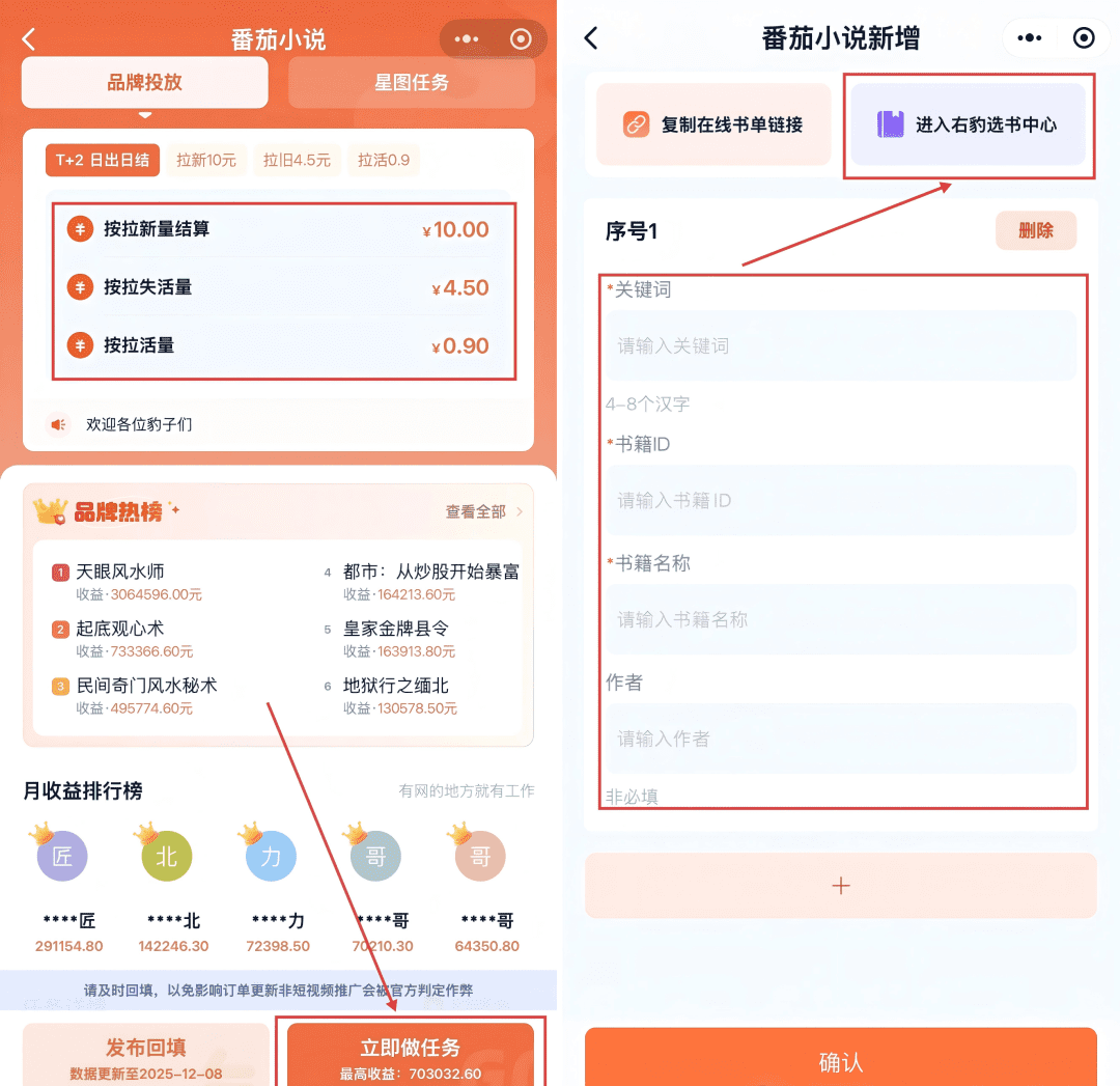 下一步的话,就是选择一个你要 推广的小说,并填写【关键词,UID 】,如下图所示