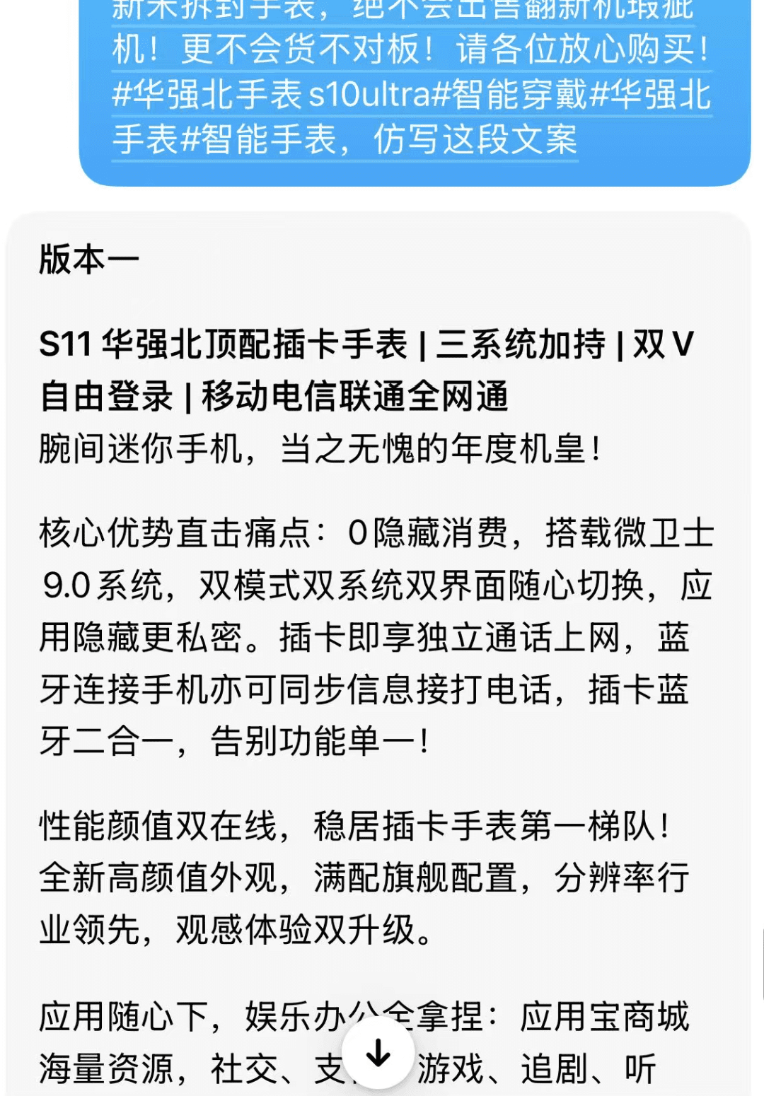 (4)写文案:这步也是非常的关键,好的文案决定了你商品的转化率,文案写的好,开始就领先同行一半。可以通过找到销量好的同行,复制他的文案,然后丢给AI,让AI帮你仿写。
