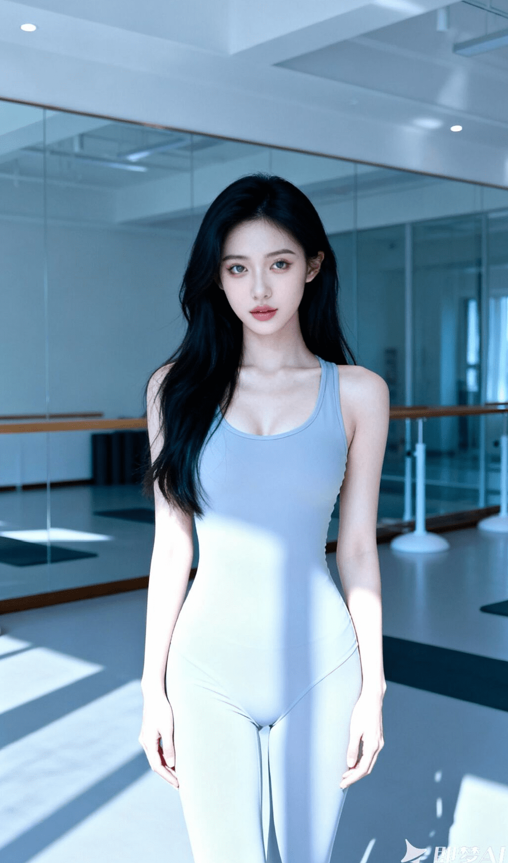 文艺范艺术照,瑜伽室,皮肤白皙,自然的眼妆、自然唇色,黑色长发,火辣身材,瑜伽服连体衣,双手放在身体两侧,立正站好。连体衣身材火辣傲人,沙漏型身材,,高颜值,打光不均匀造成的轻微曝光过度,表情自然,眉清目秀,初恋感,表情自然松弛慵懒休闲,眼神很自然不失真,完美身材,皮肤质感白嫩清透,甜美女生,完美贴合身形;整体风格简约大气,又因修身剪裁,俏皮灵动,嫩白皙柔滑,氛围感,故事感,视觉冲击效果,高级感,动态感,32K,大师杰作。梦幻,冷白皮,必须身材完美,肌肤雪白有光泽。整体画面必须清新明亮干净。随机表情,随机的淡妆容,随机发型和颜色,随机的动作,随机的光影,随机角度,总体有很多的不确定性,但又好看,搭配又很合理,最高等级画质,CCD拍摄,情绪片,极简风,唯美迷人,优雅气质,偶像气质,高级感,三庭五眼,瓜子脸,清纯,日常快照风格高质量图像,展现冰瓷玉肌冷白皮绝世美人,