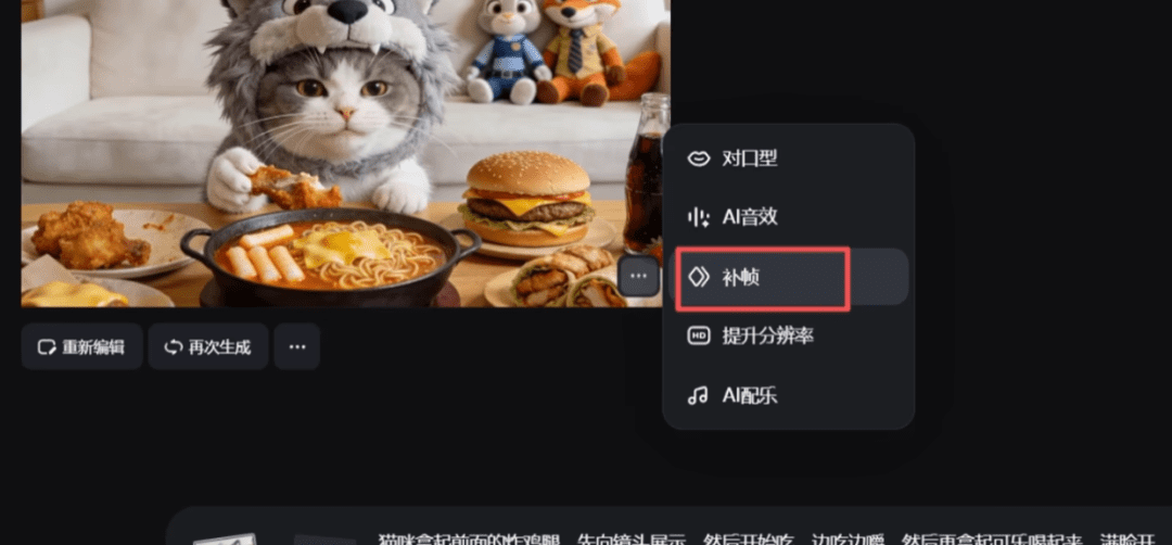 刚生成好的视频分辨率可能有点低,这里可以选择补帧,这样视频就算是制作好了。