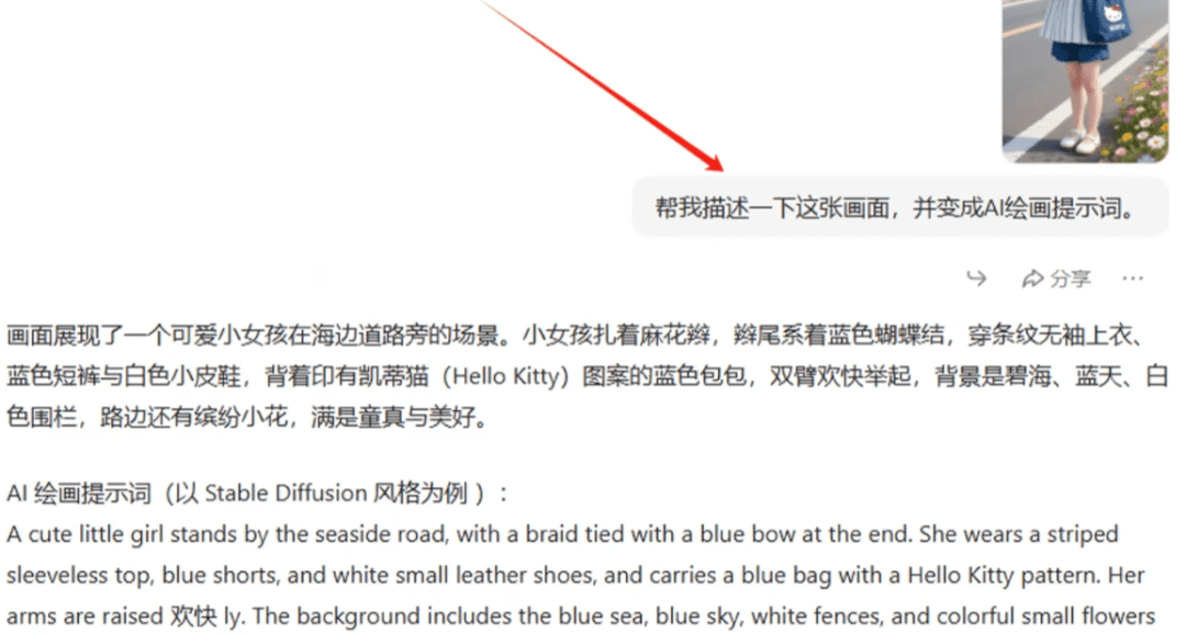 第一步我们先找一张对标图,然后打开豆包,把对标图上传,输入提示词。接下来豆包会自动生成图片的提示词
