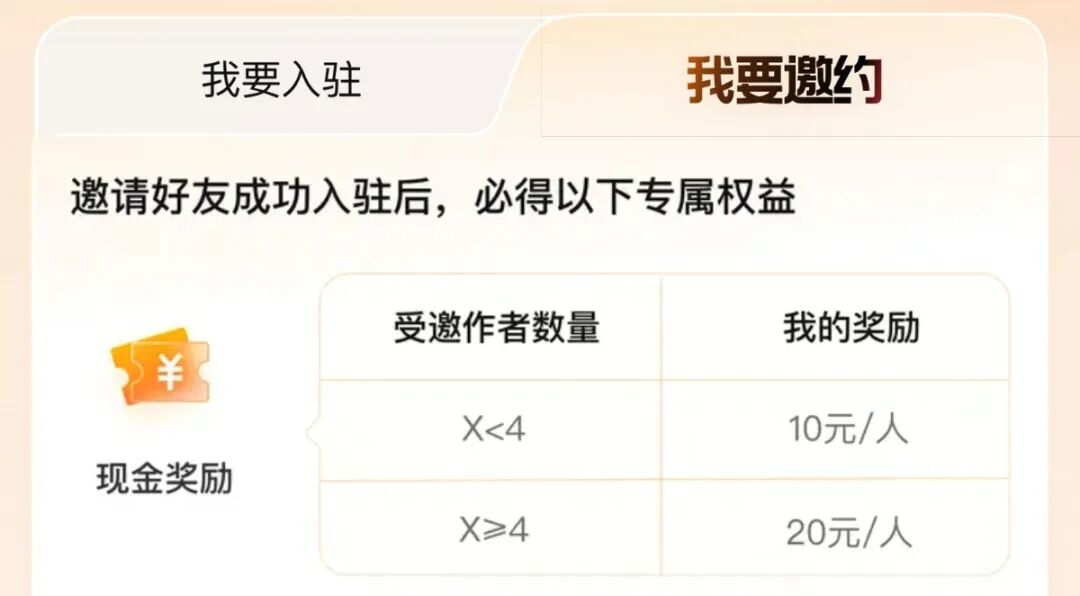 红书和B站的创作者,拥有一千名粉丝即可满足条件;抖音和快手的标准也是如此。你成功邀请一人完成全部入驻步骤并通过平台审核后,二十元的佣金就会结算到你的账户。