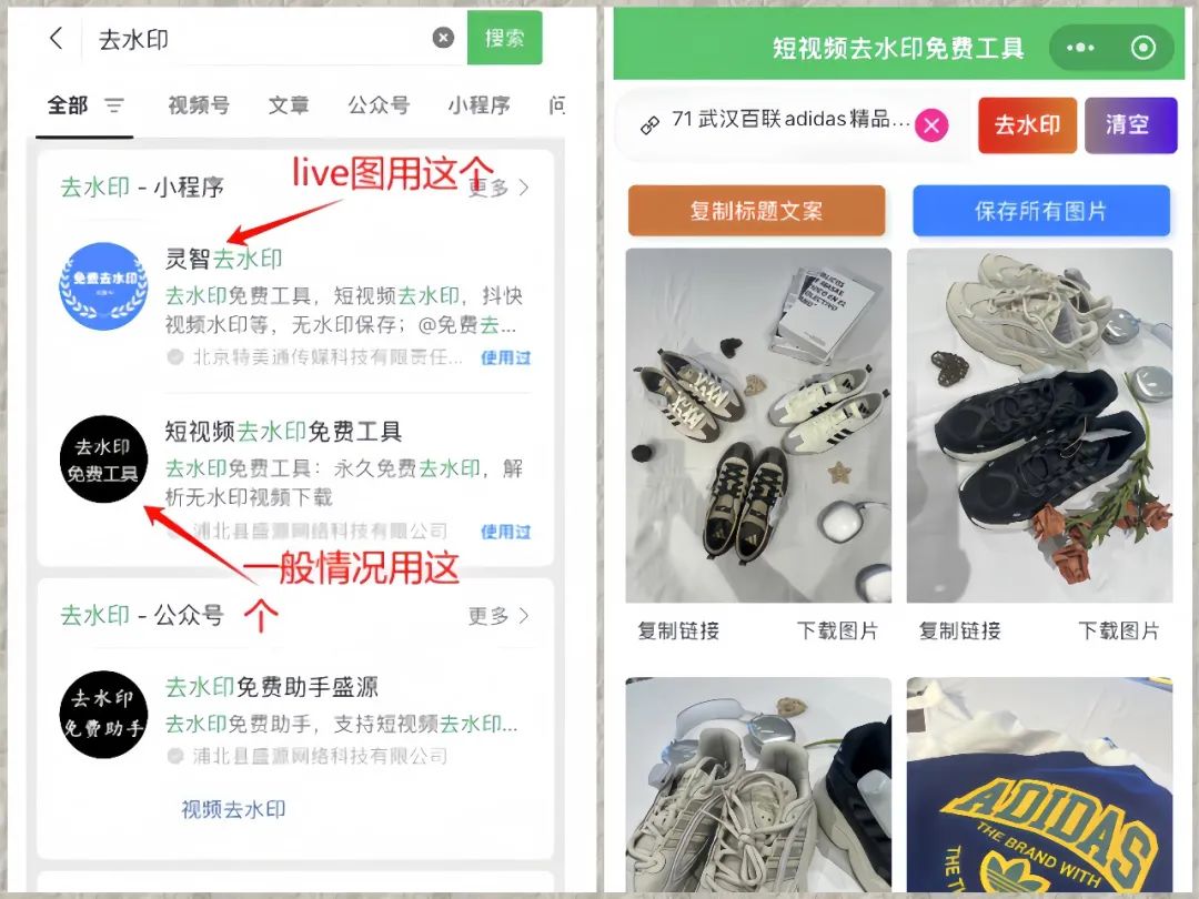 3.打开 微信,搜索 “去水印” 小程序。粘贴刚刚复制的链接,就能提取文案和图片。