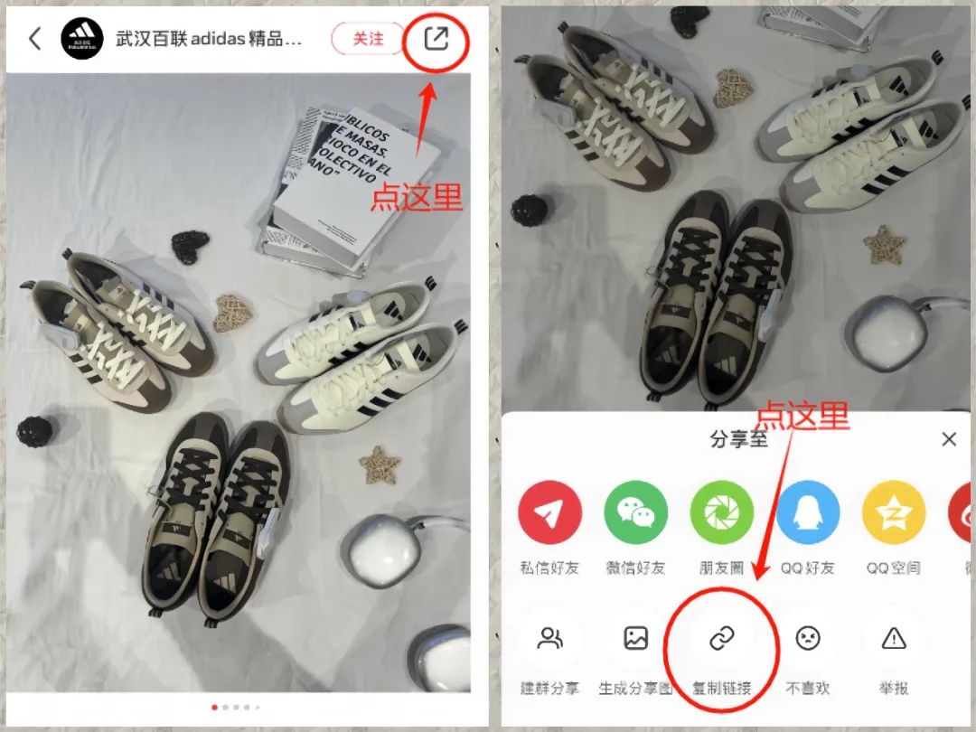 2.选择一个合适的用户,找到他们的热门笔记。点击右上角 分享 → 复制链接