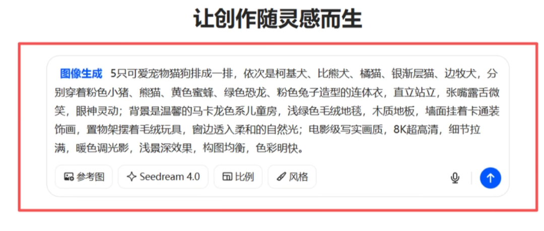 接着我们再拿这个指令进行修改,比如宠物角色换一下,衣服款式换一下,再去生成图片。