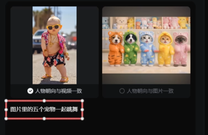 上传要模仿的动作视频和准备好的图片对话框,输入动作指令发送生成这样一条萌宠跳舞的视频就做好了,后续想要制作其他舞蹈风格视频,只需要替换模仿动作视频即可。怎么样?是不是很简单?