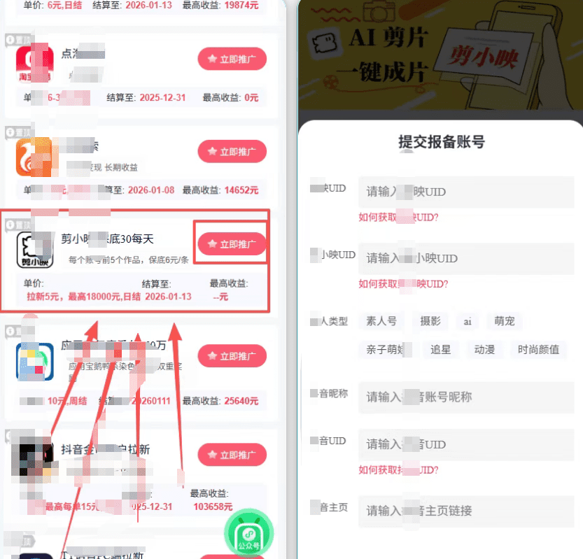 在推广平台里,找到“剪小映”板块,