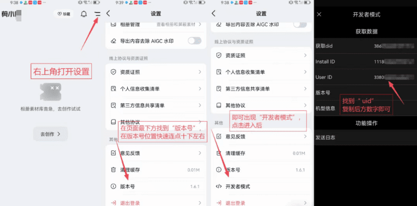 按要求填入你的某音ID、剪映ID、剪小映UID。