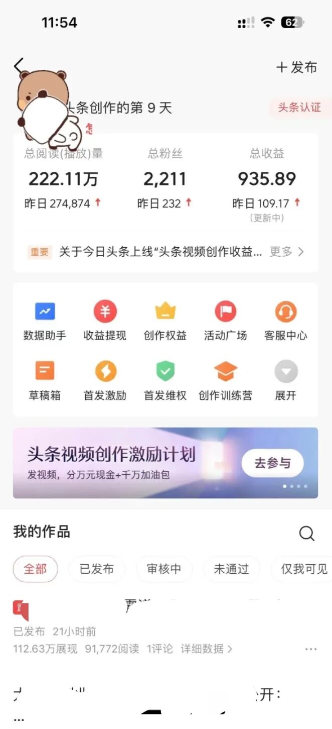 我愿称之为最适合新手去做的副业项目。主要就是把名人书籍里的精彩片段抄写下来或者打字,然后配上图片,发到有播放就有收溢的平台头条号里,最快隔天就能看到效果