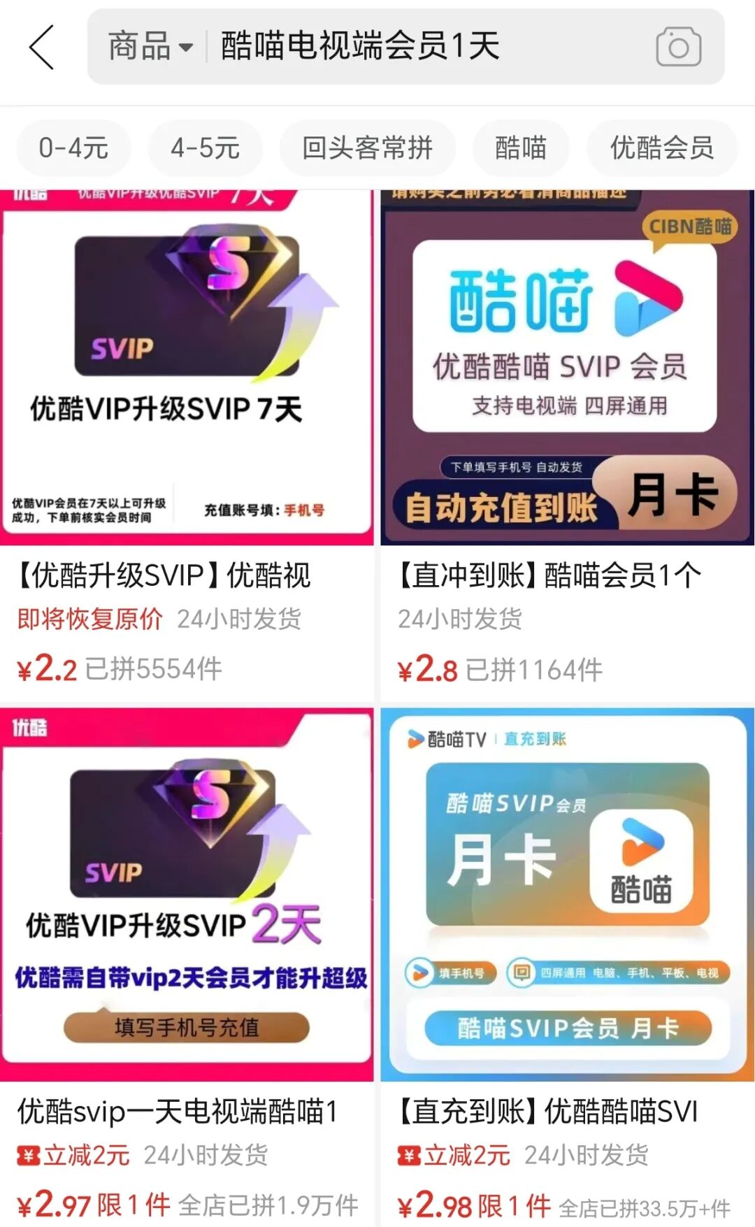 拼XX售卖的价格也很高,都是2~3元一天。