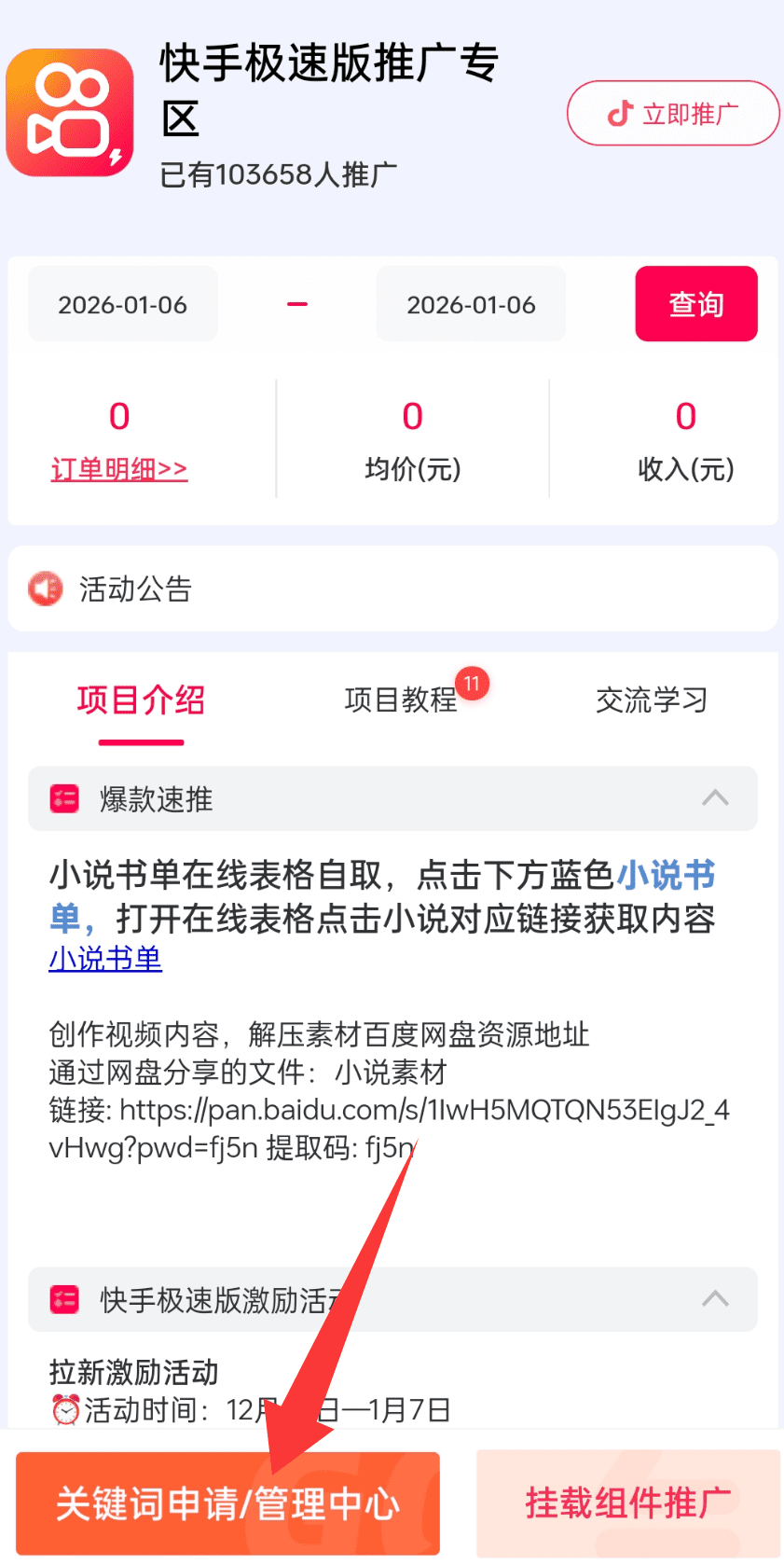 进去之后,我们只需要要在平台搜索快手极速版,然后按平台要求,填写申请资料,等待平台审核,审核完成之后,就可以开始拉新赚钱了。