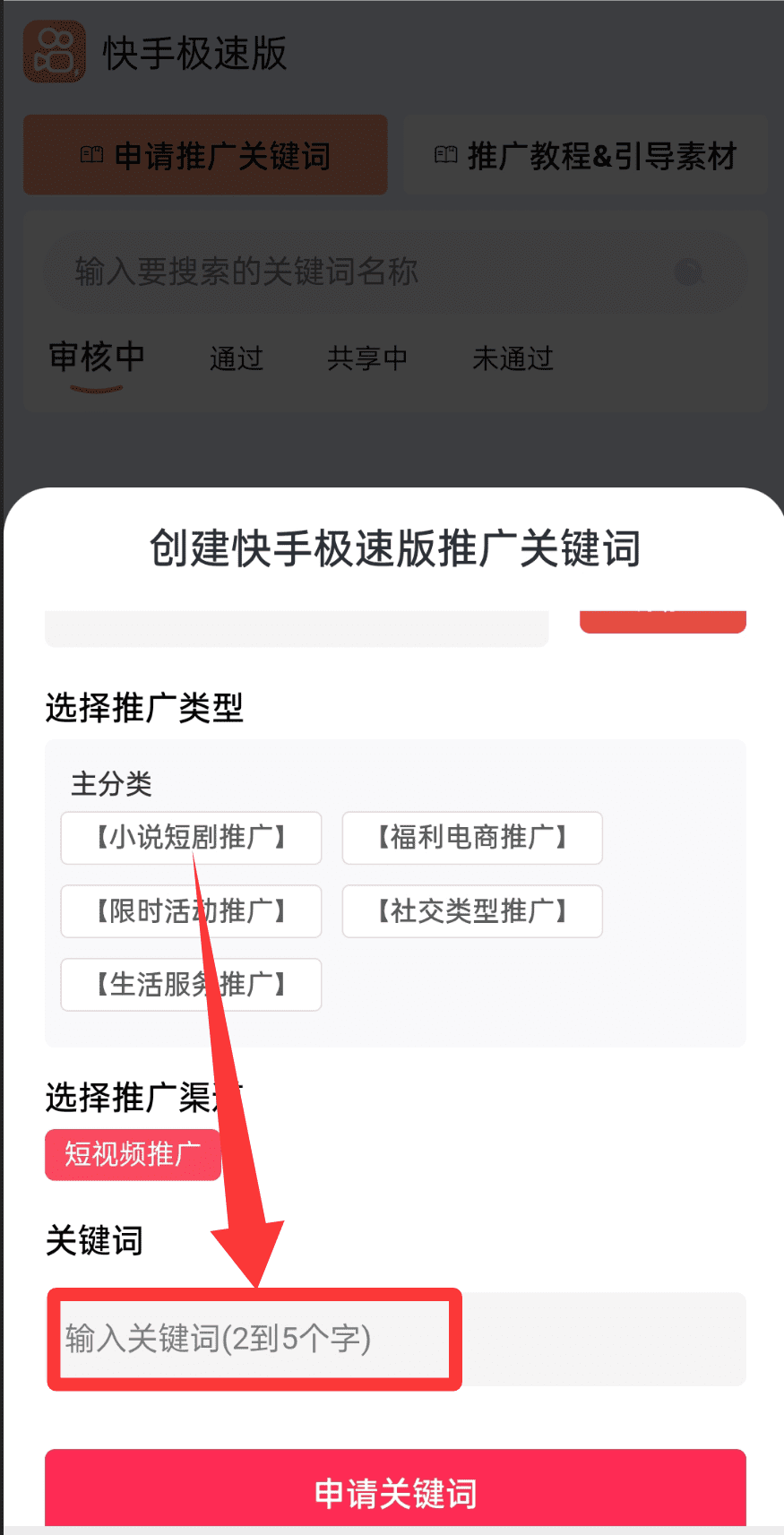 第二步:申请关键词