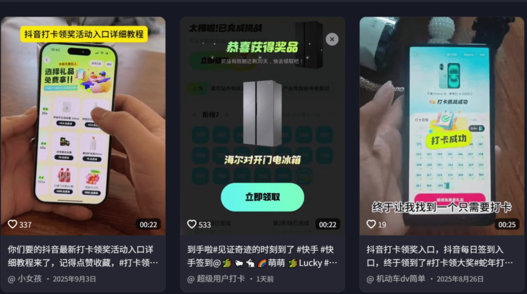 发布的作品就是去抖音搜同行,搜关键词打卡活动,然后把这些视频无水印下载下来。